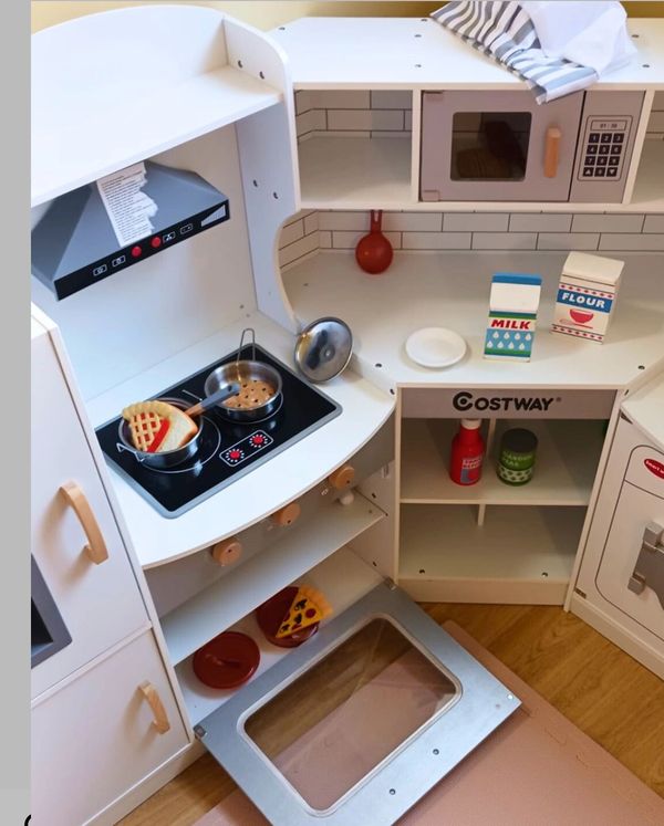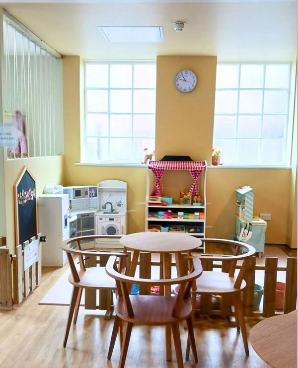 Our scandi-style play area includes a play kitchen, checkout, ice cream stand, reading area, building blocks, a doll-house and so much more!
